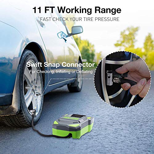 AUTO SHUT OFF : Simple and useful technology in the car air pump. Preset your desired pressure value, When the tire inflator reaches the desired pressure, the car air compressor will automatically turn off. So you don’t have to worry about over inflating or low tire pressure anymore. Convoy your safety all the way