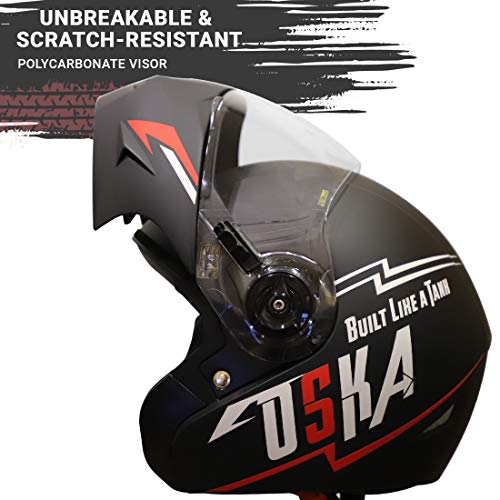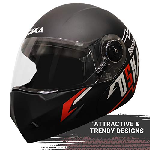 Steelbird SB-45 OSKA Flip Up Helmet with Reflective Graphics (Medium 580 MM, Matt Black with Clear Visor)